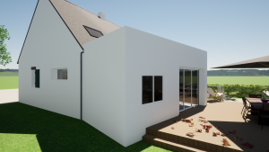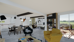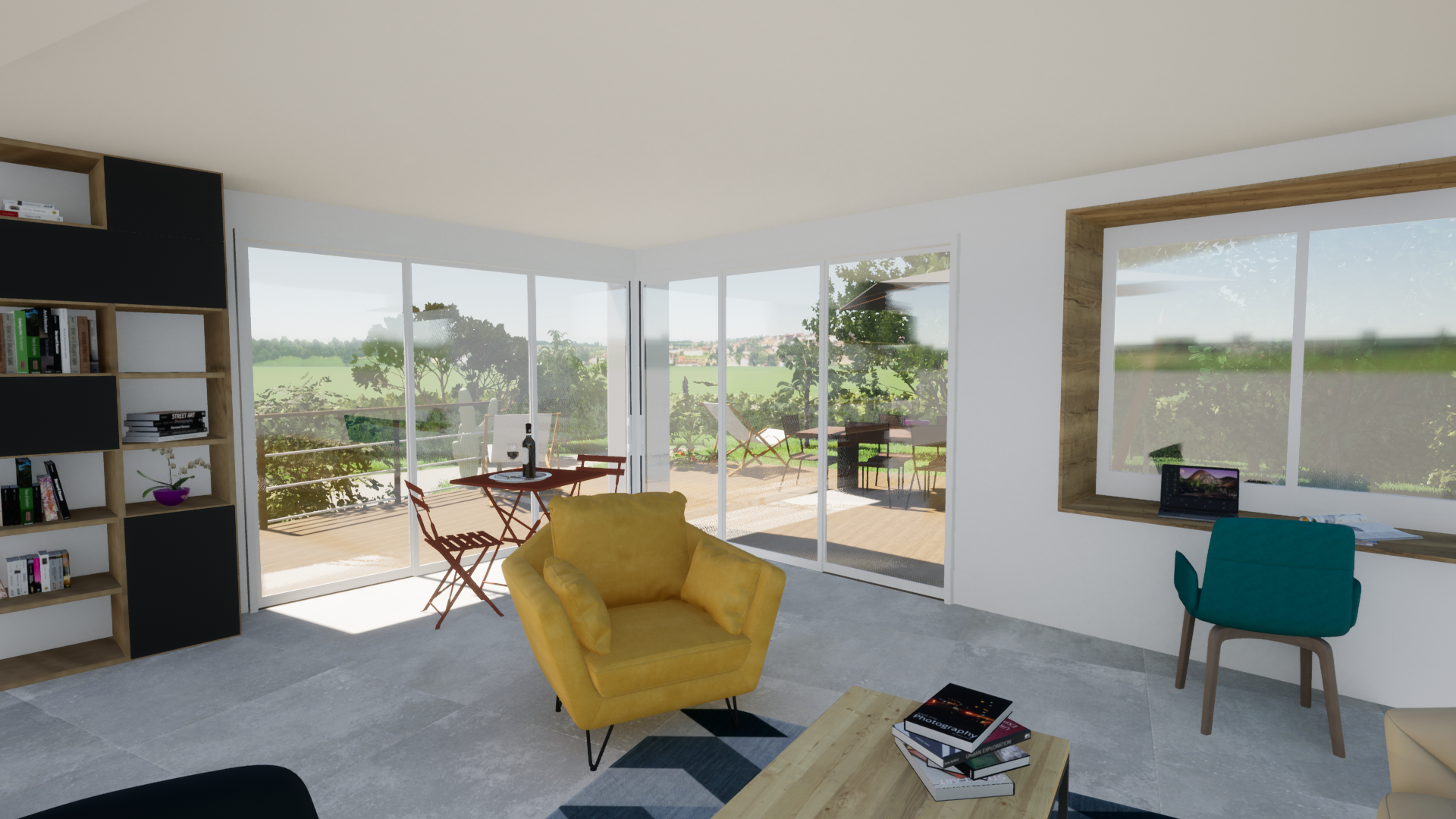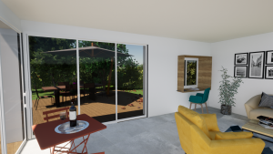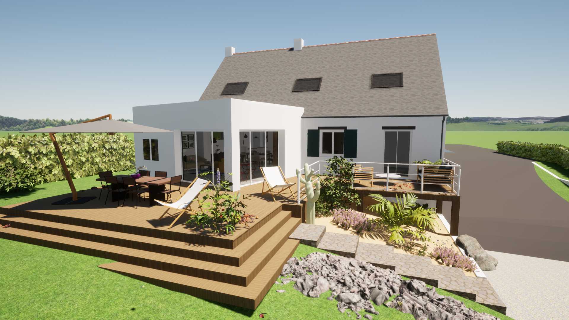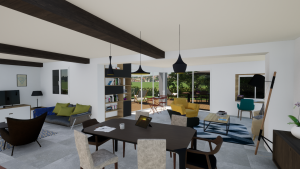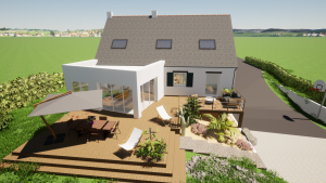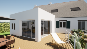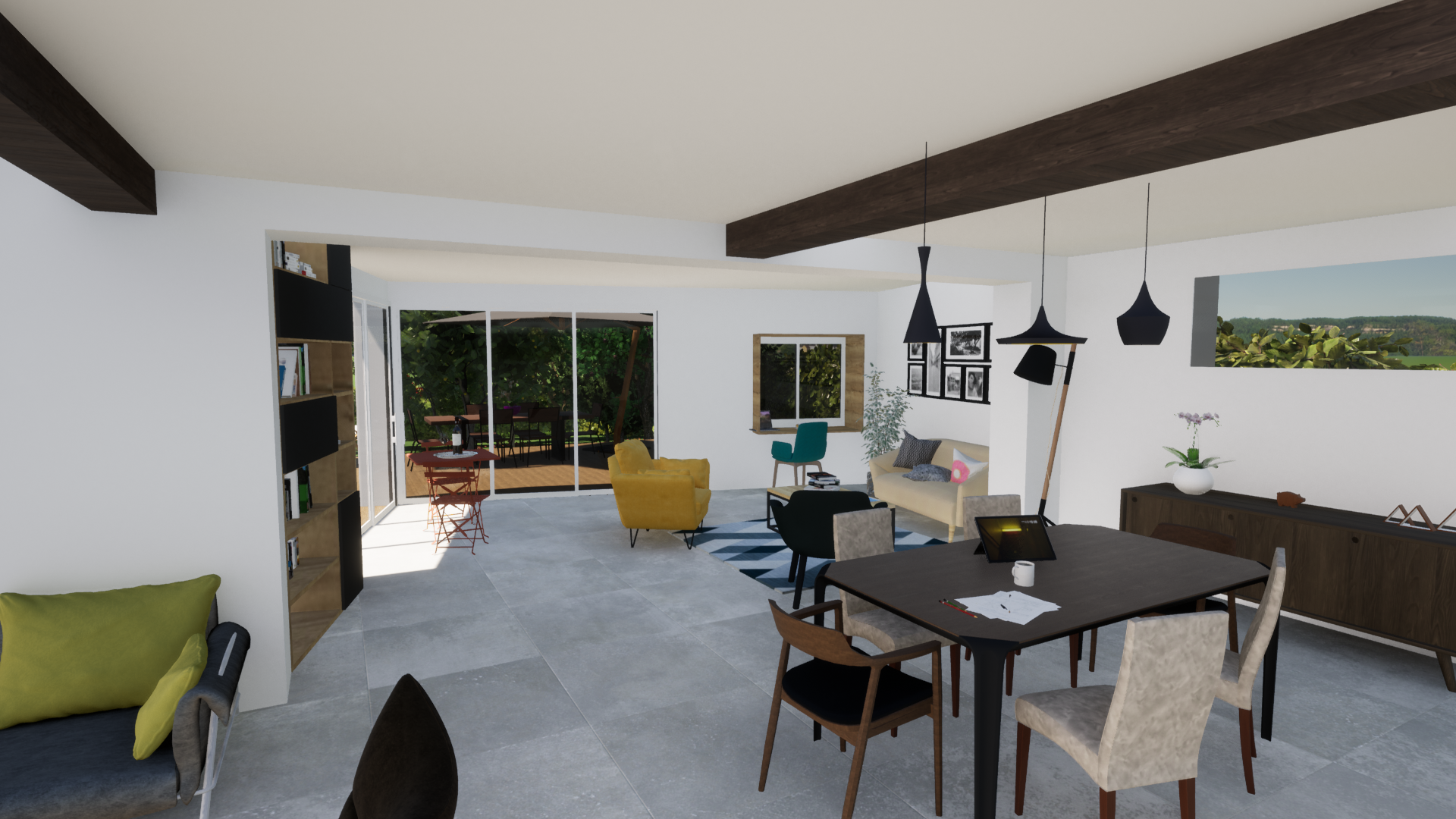 Un architecte a dessiné le projet d’extension de la maison et j’ai dessiné l’aménagement intérieur et extérieur pour permettre aux clients de se projeter. La visite virtuelle de cet espace les a conforté dans leur choix.