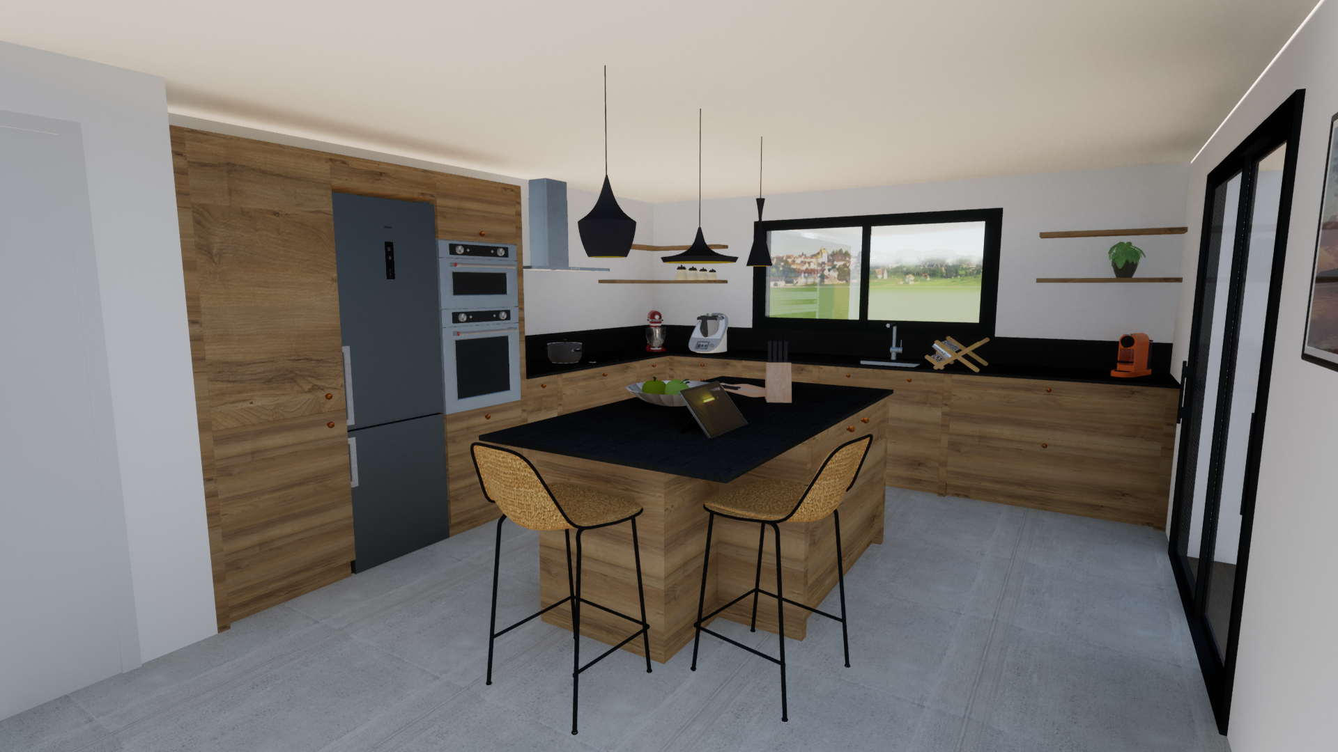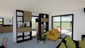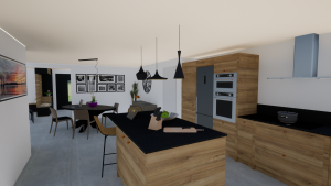 A la demande du client, j’ai donc dessiné un projet d’une extension avec la cuisine et rénovation de l’espace salon et de l’entrée.